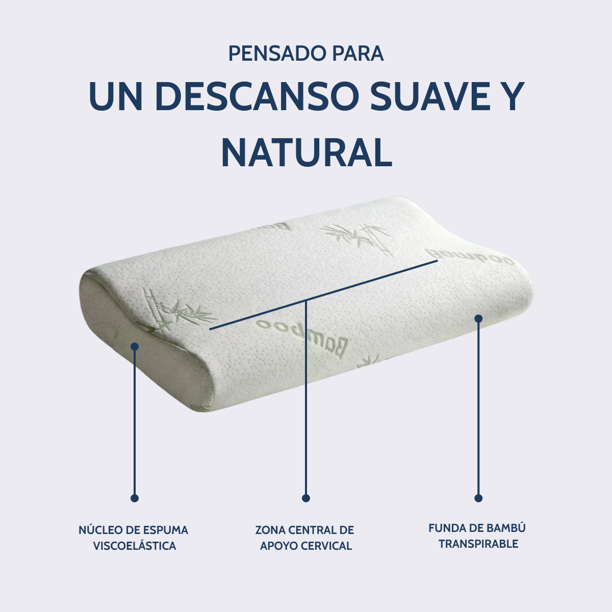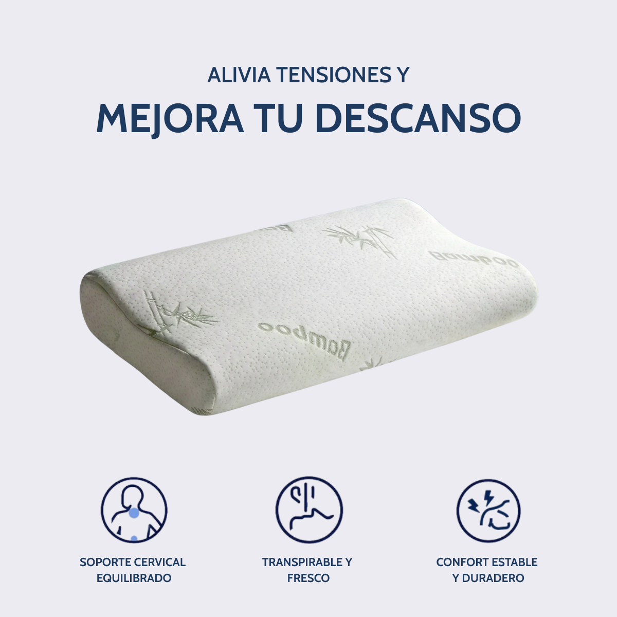 Su espuma viscoelástica de alta calidad se adapta de forma natural a tu cuello, alivia la presión y mejora tu descanso desde las primeras noches.